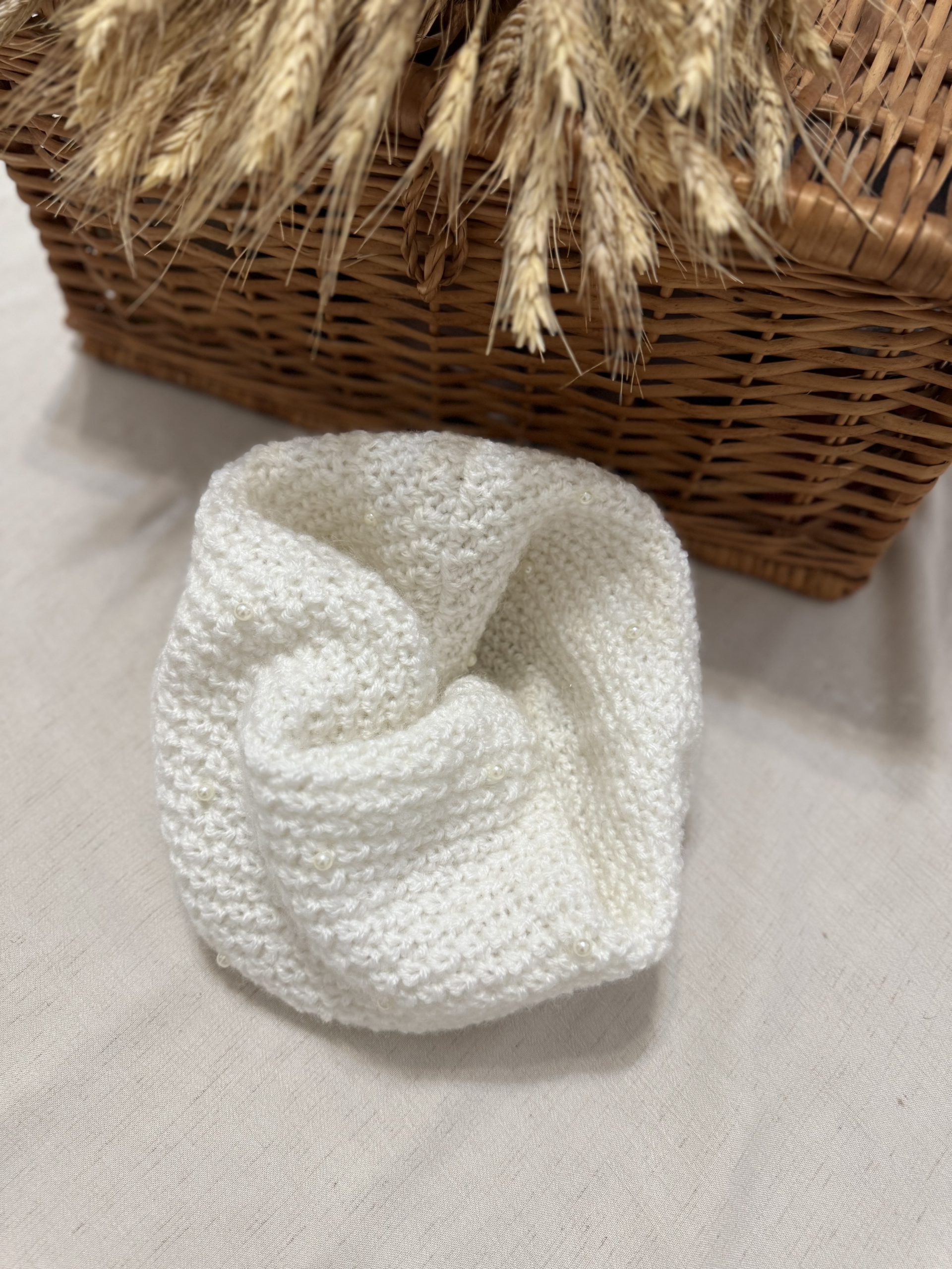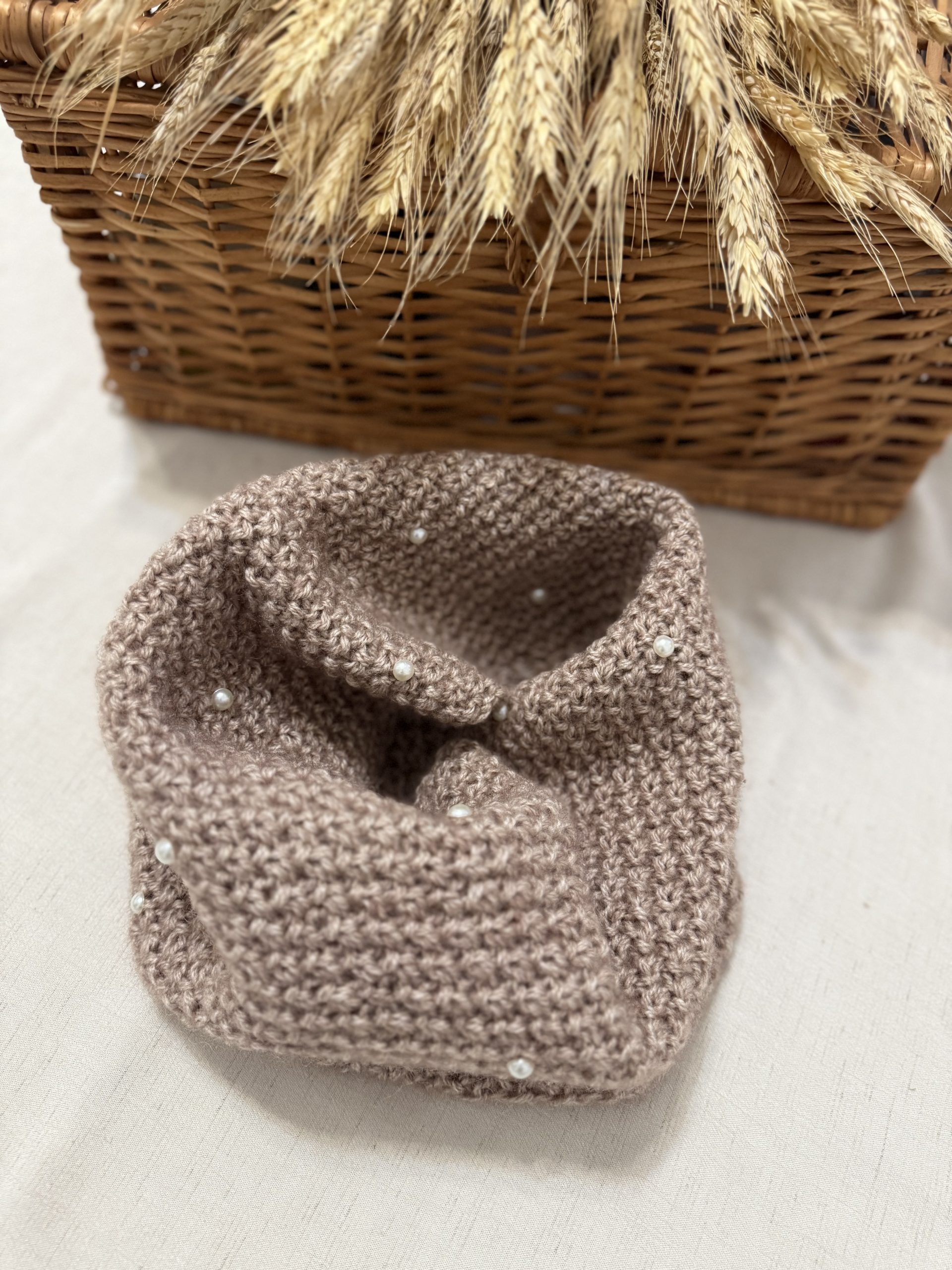 Acest fular tricotat manual pentru fetițe este realizat dintr-un fir moale și călduros suficient de larg asigurând confort și protecție împotriva frigului, fiind ideal pentru sezonul rece