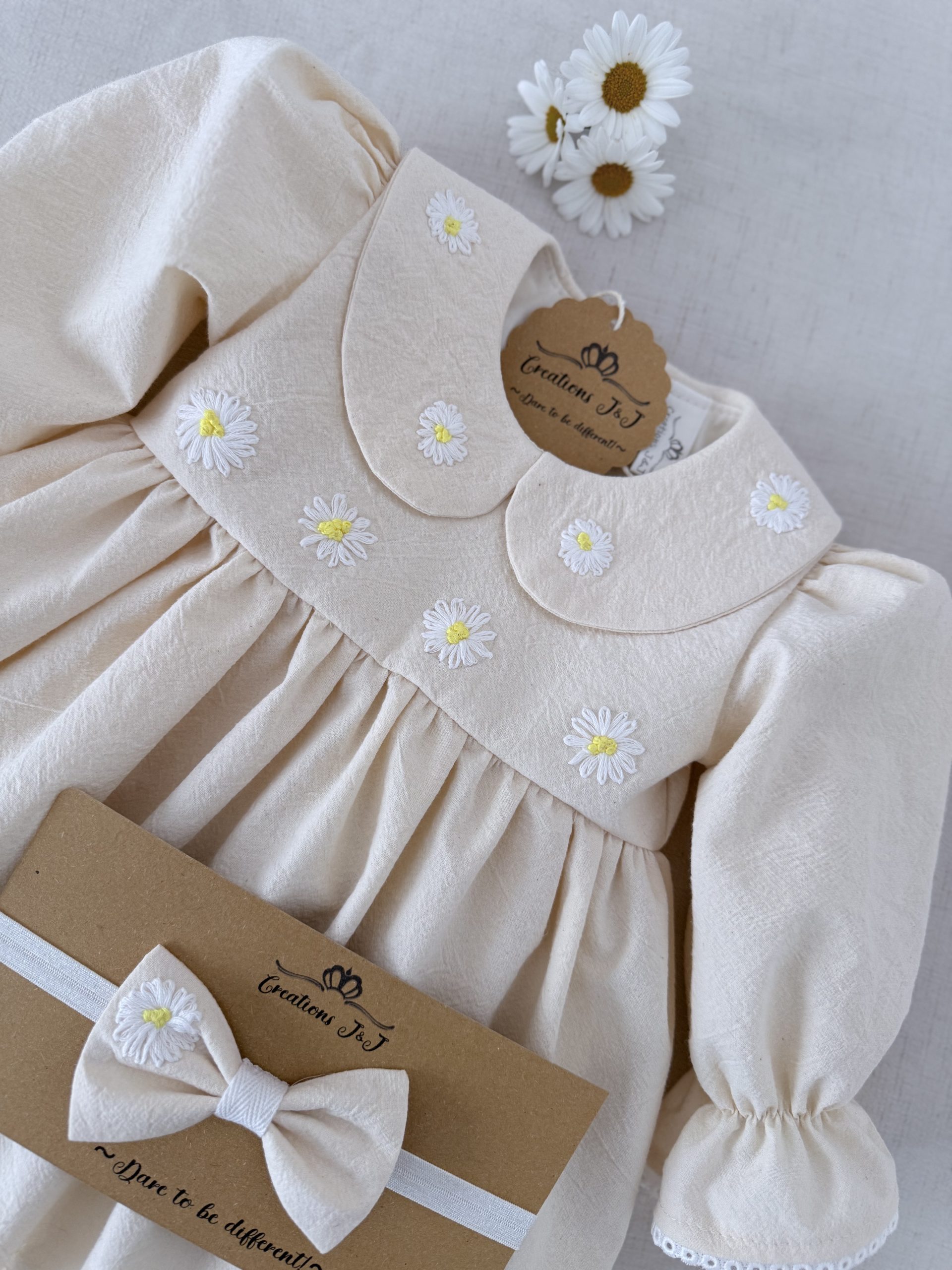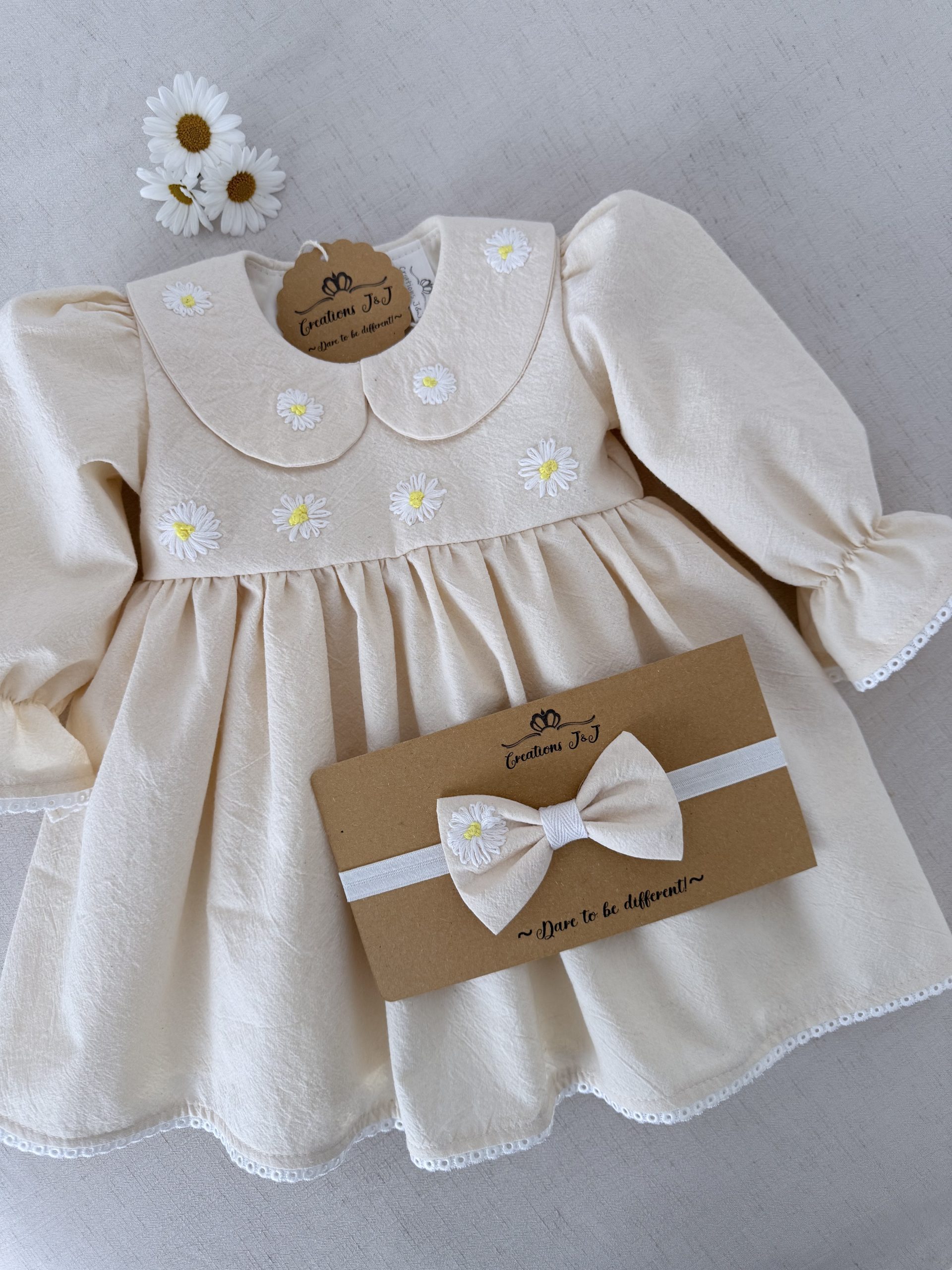 Rochița Marguerite – o rochiță vintage din bumbac 100% cu flori brodate manual.