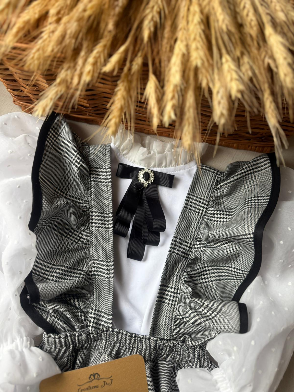 Eternul alb-negru adaugă un aer de eleganță atemporală, asigurându-se că rochița va rămâne în tendințe indiferent de sezon. Carourile sunt un simbol al stilului britanic și evocă o notă de sofisticare.